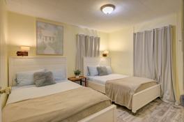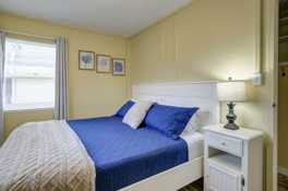 The first bedroom offers a serene retreat with a comfortable queen bed, ensuring a restful night's sleep. The second bedroom is ideal for additional guests or family members, featuring two full beds. The cottage includes a well-appointed bathroom with all necessary amenities to start your day refreshed.
