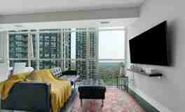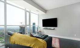 Welcome to The Residences at Parkside Village, where urban luxury meets convenience. This 1 bed plus den penthouse in City Centre, Mississauga, offers high ceilings and floor-to-ceiling windows, showcasing stunning south views from east to west. The modern kitchen features stainless steel appliances, while the spacious bedroom ensures comfort. Relax on the huge balcony and enjoy the view. Located close to highways, schools, a hospital, shopping, and entertainment. This building boasts top-notch amenities, including a fitness centre, yoga room, kids' playroom, outdoor BBQ and lounge, games room, and more. Maintenance fees cover heat, water, central air-conditioner, common elements, building insurance and parking. Includes 1 underground parking space and a storage locker. Experience luxury living at its finest in this exceptional penthouse.
