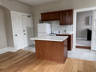 Amenities include a kitchen island (rare to find in a studio!), built-ins, and a fully-equipped, renovated kitchen. You will fall in love with how spacious this studio is, and it is also full of natural light - just look at those photos!