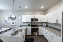 This beautiful collection of modern style living apartment homes feature everything from a fully-equipped kitchen/bathrooms with designer finishes, and modern wood custom cabinets as well granite counter tops, stainless steel appliances, distinctive wood style flooring through out the common areas and plush thick carpets in bed rooms. Modern fitness club Features, fully equipped kitchen, fitness center with cardio, Pool and hot tub. Media package includes 150 Direct T.V. & High speed internet, pet friendly.