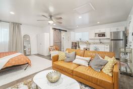 Brand New, Fully Furnished Studio ADU/Granny Flat with Private Entrance! This cozy and stylish retreat is nestled in a peaceful neighborhood. This new, fully furnished studio ADU offers the perfect blend of comfort, convenience, and privacy, beautifully designed studio featuring contemporary furnishings, tasteful decor, ample natural light, and functionally laid out living space that maximizes every square foot, including a comfortable sleeping area, a cozy living space, a dining nook, and a well-appointed kitchen with all the essentials. Enjoy your own modern bathroom, complete with a walk-in shower, and vanity. Relax and unwind in the serene outdoor space, on the patio. This unit features the convenience of a private entrance, allowing you to come and go as you, please. Dedicated parking ensures hassle-free parking. Located in a desirable neighborhood, enjoy easy access to local amenities, parks, shopping centers, restaurants, and public transportation options. Easy freeway access, get on the 125, 94, and