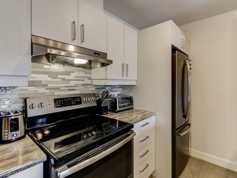 This rare and coveted ground floor condo with a huge private fenced backyard that is maintenance free with turf and large patio.
