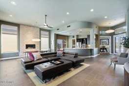 Stunning furnished vacation rental in the guard gated Grayhawk community. Incredible great room layout with distinct living areas. This home has been completely remodeled and is in immaculate condition. There are many dining options, one in the great room area located by the custom raised fireplace, the eat-in kitchen, the kitchen island, and the raised breakfast bar. Beautiful oversized tiled flooring throughout along with custom paint and window coverings. Split bedroom floorplan with primary in the back and it has its own separate exit. The backyard is an entertainer's dream. Large covered patio & raised paver sitting area, and a gorgeous water feature & fire wall & gas BBQ . King in primary and King in guest. Separate office area as well. Heated community pool. High season (Dec-Apr) is $8500 a month with $150 gas cap May, October, November are $6375 a month with $150 combined gas and electric June-Sept are $4250 a month and tenant pays all electric