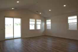 Three-bedroom solar home for lease in the gated Aguila community at Terra Lago in North Indio. This modern home offers an open, light-filled floor plan with soaring cathedral ceilings in the great room and an island kitchen featuring stainless steel GE WiFi-enabled appliances and a built-in coffee bar. All windows are fitted with new roller shades for a clean, contemporary look.