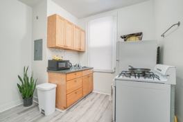 This third-floor apartment offers a new place to call home, just one block from Johns Hopkins Homewood Campus! The front door opens to a spacious well-lit living room with stylish engineered plank flooring and an updated kitchen with a compact gas range, wood cabinets, and easy-to-clean formica countertops. The modernized bathroom features a full-sized tub. The large, front-facing bedroom measures 15' x 15' and has hardwood floors and tons of natural sunlight through three big windows. Right around the corner you can grab a coffee at Starbucks, and enjoy the many shops and eateries the Charles Village Shopping District offers. Free laundry is available next door at 3116 Calvert. Tenant pays for gas and electric, plus a share of public service utilities for the building. Private parking available in rear for additional fee.