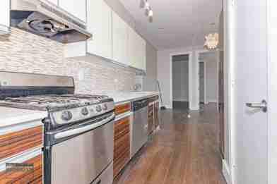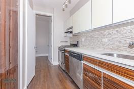 This apartment features spacious living room, stainless steel kitchen, modern bathroom, hardwood floors, and windows that let in natural light throughout.