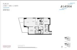 This spacious NE facing 2-bedroom, 2-bathroom + 1 den condo features an open concept floor plan with high ceilings, laminate floors, and European appliances. The master bedroom includes an en suite bathroom and a walk-in closet for your convenience. The unit is equipped with air conditioning, forced air heating, a gas cook range, and in-suite laundry.