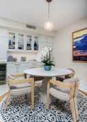 Welcome to this beautifully remodeled condo located in the charming community of Desert Island. Featuring 2 bedrms, 2 bathrms, this condo offers a modern & open concept design that is sure to impress. Step inside and immediately notice the stunning porcelain marble-look tile flooring that flows throughout the main living areas onto the balcony. The kitchen is a chef's dream, with its sleek waterfall edge counters & luxurious marble countertops. Custom lighting and audio equipment & installed throughout, offering full control for a home automation system. The living room is spacious & inviting, with 2 twin wall beds for added convenience. The primary bedroom boasts a walk-in closet & a remodeled en suite bathroom, complete with a large soaking tub & a separate shower featuring marble countertops. This community has it all. Surrounded by a beautiful lake and an 18-hole championship golf course, residents can enjoy picturesque views while taking leisurely walks along the walking paths. Fruit trees, benches, tennis courts, heated swimming pools, spas, pedal boats, and fishing spots provide endless entertainment options. For added security and convenience, there is a 24-hour gate entry. The location of this condo is a dream, with its central proximity. Near Disney's Cotino Story Living & the River in Rancho Mirage. You'll find plenty of eateries, including the new Dave & Buster's, Escape Games, as well as a super charging station. Don't miss out on this opportunit