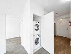 Exquisite 2 Br Split Layout, with 2 Full Washrooms Unit In East Liberty St. Water Lake View From The Balcony, An Open Concept Layout With Combined Living & Dinning Area. Bright & Clean with 9 ft. ceilings, Modern Open Concept Kitchen, Laminate Floors Throughout. Bright Corner Prime Room with Ensuite. Easy Access to All Amenities, Trendy Liberty Village Community. T.T.C Steps Away, G O Train & Close Access to Q E W. New Comfort Flooring Tiles on Balcony.