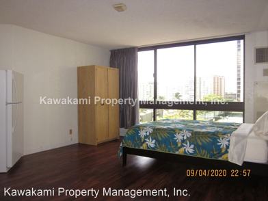 Fresh, Furnished, Beautifully updated, 8th Floor Studio In Liliuokalani Gardens - This furnished, 8th floor, 321 sq ft studio has been updated with new cabinetry, granite countertops, full kitchen w/deep kitchen sink, wood laminate flooring and draperies. It is lightly furnished, as you see in the photos, so that you can add your own personal touches. There is a queen size bed, armoire, dishes, eating/cooking utensils, cookware, glassware. Appliances include a full size refrigerator, 2-burner glass cooktop, microwave and disposal. There is a coin laundry center in the building. The building's amenities include central AC for each unit, a pool, jacuzzi, tennis courts, 24 hour security, guest parking, BBQ grills. Parking is available to rent monthly per month or $280 per year. Available now for a 1 year lease, the rent includes water/sewer and basic cable. Contact Sheila Kawakami (R) , License # RB19847 at 739-2323 or **** to schedule a showing. No Pets and no smoking.