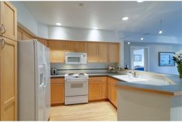 Spectacular Location in Downtown Bellevue at the Metropolitan. Condo features a spacious open floor plan with expansive windows to let in plenty of light. Living Rm features a cozy gas f/p, ceiling fan and deck. Dining Area with contemporary lighting and additional space for a desk. Kitchen has white appliances and plenty of cabinet and counter space as well as a breakfast bar. Bedroom is generously sized and features a huge walk-in closet. W/D and Secured Parking with Additional Storage.