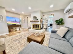As you enter the home you walk into the cozy living room with a fireplace and 60” smart TV with surround sound. Just beyond there you'll see the large open kitchen and dining area that seats 6+. Just before going out to the covered and nicely lit garden area you'll pass a workspace that includes an adjustable standing desk (sit or stand to your comfort) and a beautiful ergonomic desk chair.