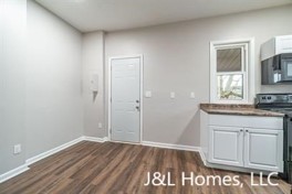 Spacious kitchen with upgraded appliances and fixtures. Additional cabinets for extra storage space are located in the laundry room (washer and dryer hookups provided). Parking lot located in the rear, off street parking is also available. Upstairs unit!