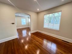 Featuring gorgeous hardwood floors throughout, the home opens to a spacious living room with a cozy fireplace. The large, separate formal dining room is perfect for entertaining. The kitchen has been fully remodeled with new white cabinets, granite countertops, and stainless steel appliances. Off the kitchen, you'll find an additional enclosed room with a full-size washer and dryer included.
