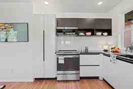 Nirvana floor plan: 2BR/2BA. Amrita floor plan: 2BR/1BA. Apartment in totally renovated midcentury-modern building. Open concept floor plan. L-shaped style kitchen. Granite countertops, ss appliances, seamless backsplash. Kitchen pantry and walk-in storage closets in every unit. Original restored hardwood floors. Oversized energy-efficient windows throughout. Street and courtyard views in all units. Designer quality finishes.