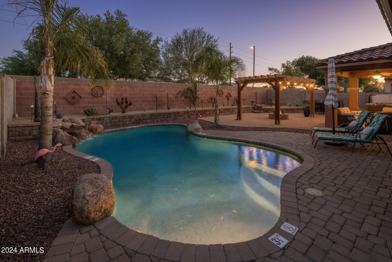 Highly upgraded fully furnished SHORT TERM rental is now available in Vista Dorada with a 30 day minimum rental agreement. This beautiful home features 4 bedrooms, 2 bathrooms, play pool and an above ground spa. This open great room floor plan features a split floor plan making it the perfect retreat for you and your guests. The kitchen includes SS appliances, quartz counter tops, a breakfast island, white shaker cabinets, and more. The primary bedroom was finished with a spa like bathroom complete with an oversized walk in shower & custom closet. The secondary bedrooms include 1 queen bed, 2 singles and the 4th bedroom is an office with a murphy bed. Step out back to your private oasis complete with a pool, above ground spa, covered patio, pergola, fire pit, BBQ area and tons of pavers offering multiple seating areas.