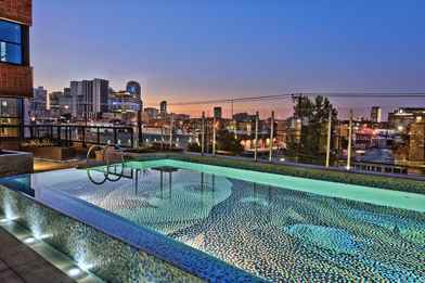 Elevated courtyard with customized pool overlooking Deep Ellum