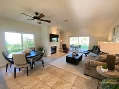 This lovely 3 bedroom property has been beautifully remodeled with a Designers Touch. The kitchen has soft close cabinets, stainless steele appliances, Hunter Douglas custom blinds, wine refrigerator, and inset lighting. As you relax in your living room you will find a Smart TV, and gas fireplace with views of the pool just steps away. The Master Suite has a custom built walk in closet, King size bed and a master bathroom with separate shower and bathtub. The guest bedroom has a King bed with walk in closet and private bath. The additional bedroom has a Queen pull out sleeper sofa for those additional guests. You will find Desert Falls Scottish Links Championship Golf Course, rated as one of the top 10 courses by the SCPGA and awarded a 4 -star rating from Golf Digests ''Best Places to Play''! Desert Falls Country Club is centrally located in the middle of the valley within walking distance to restaurants and shopping and only a few miles to top entertainment venues. Acrisure Arena, Agua Caliente Spa & Casino, the McCallum Theatre and El Paseo: a 2-mile boulevard of upscale Galleries, Boutiques, and fine Dining Restaurants are all within just a few minutes' drive. Enjoy Tennis, Pickleball, Fitness Center, 29+ Pools & Spas, Wi-Fi, Cable, Building, Grounds, and Landscaping maintenance, Guarded Gate and 24-hour Security amenities all included. You can choose to golf on a pay as you play.