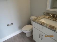 Inside, enjoy fresh neutral paint and no carpet throughout, creating a clean, modern feel. The open-concept main level features a spacious living room with a cozy nook and an eat-in kitchen complete with a breakfast bar, sleek countertops, ample cabinet space, stainless steel appliances (including a flat cooktop stove), and a stylish backsplash. A convenient half bath with a pedestal sink and a screened-in back porch complete the first floor.