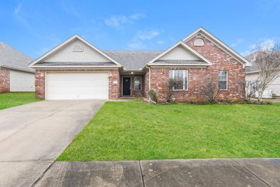 Located at 1717 White Oak Lane in Benton, AR, this three-bedroom, two-bath home offers 1,350 square feet of well-arranged living space. A classic brick exterior and attached two-car garage create a welcoming first impression, while the covered entry leads into a bright interior with tall ceilings and open living areas.