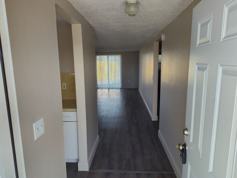 Entering the newly painted apartment, you step into an open living/dining area with views of the private backyard. just to the left is a galley-style kitchen featuring a pass-through window that opens to the dining area. To the right is the entrance to the hallway leading to both bedrooms with new floors and a shared hall bath.