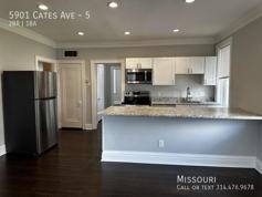 Living bright, light and airy. 2 Bedroom, 1 bath 3rd floor unit in the fantastic Cates Building with an abundance of windows and natural light. These apartments have recently been completed gut renovated and finished with luxury finishes. Located in the up and coming West End with amazing access to Wash U, SLU, Fontbonne, Webster and STLCOP. Let us not forget about the convenient access to the Loop, 3rd Degree Glass and much more. Upon entering the unit, you first notice beautiful dark wood floors and the natural light. Kitchen is updated with new counter tops, shaker cabinets, stainless-steel appliances and full closet pantry. Large living room and additional sunroom/office with two closets complete this large apartment. Each bedroom includes a huge walk in closet with another additional closet in the room. Included is one assigned parking space in rear lot and washer and dryer hookups. $30 application per adult/Non-smoking building.