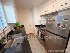 The kitchen features brand-new stainless steel appliances, sleek black granite countertops, and modern white cabinetry, providing both style and functionality. Both bedrooms include new flooring and generously sized closets, offering plenty of storage space.