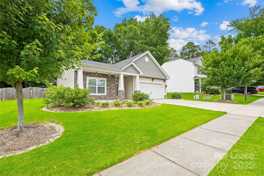 Step into this beautiful, move-in ready ranch home! Featuring an open floor plan, this three-bed, two-bath gem is brimming with upgrades throughout. From the charming rocking chair front porch, you'll immediately feel the warm curb appeal that sets this home apart. Inside, you'll find hardwood floors throughout the common areas, vaulted ceilings, and designer lighting that adds a touch of elegance. The thoughtfully designed kitchen boasts a tiled backsplash, stainless steel appliances, granite countertops, and a spacious island-perfect for casual dining, meal prep, and entertaining. The adjacent dining area, with its lighted wall cabinets, creates a delightful atmosphere for any occasion. The large primary suite features an en-suite bathroom with dual vanities and a big tiled shower. Outdoors, enjoy the large private, fenced yard, huge paver stone patio and space under the gazebo to relax. Washer/dryer and lawn care included. Community pool, playground plus easy access to I-77 & I-485. Pets conditional. Available after Jan 2nd, at least 24 hour notice to schedule.