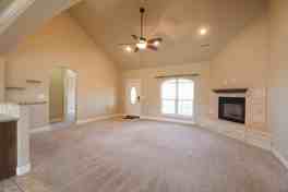 The centerpiece of the home is the large living area, boasting high ceilings and a cozy fireplace that create an open and airy atmosphere. The modern kitchen is a chef’s delight, featuring a kitchen island and a full suite of appliances including a refrigerator, dishwasher, microwave, and stove/oven. The layout creates a versatile living arrangement with one private bedroom and bathroom located upstairs, while the remaining rooms are easily accessible on the main floor.