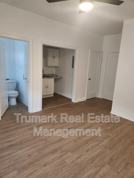 This economical unit comes ready with a walk in closet and a small kitchenette. A window unit provides both powerful heating and cooling for the unit. Brand new windows were just installed and additional insulation as well to provide sound and temperature insulation. Unit comes with a small built in shelf as well and a ceiling fan to circulate air. As with all vintage units, it comes with coveted vaulted ceilings. Kitchenette comes with a compact electric stove, sink, and space for a small fridge. This unit is perfect for the budget conscious renter looking for something quaint yet affordable.