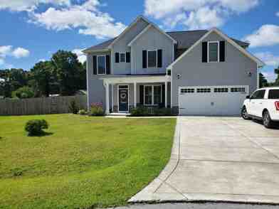 Located on a cul-de-sac this 5 bedroom, 3 bath home has a large fenced in back yard. Two car garage. LVP flooring on lower level, carpet in bedrooms. Laundry room on second floor. Kitchen bar, granite counter tops, guest bedroom on 1st level. Master suite has 2 large walk-in closets - one large enough to be used as a nursery. Dogs allowed. Short drive to Downtown Swansboro, Emerald Isle Beaches. 20 minute drive to Camp Lejeune. Application fee $50. Security deposit and renters insurance required. Available 6/1/2026