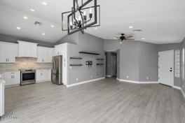 Welcome home to this move-in ready 3 bedroom, 2 bathroom property! You'll love the open floor plan featuring a gorgeous updated kitchen, bathrooms, flooring, and paint. Primary suite features a walk-in closet, dual bathroom sinks, and high ceilings. Step outside to your own private pool and outdoor space with a shaded pergola. All appliances- the refrigerator, washer, dryer, reverse osmosis, water softener, a beverage cooler, and solar are all included! You'll love living in the community of Gilbert Ranch with parks and tennis courts. Convenient to shops, restaurants, and highway access. Available for occupancy now!