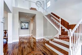 Gorgeous 5 bedroom home at end of cul-de-sac with spacious back yard. Beautiful interior with wood floors, vaulted ceilings and dramatic staircase. One bedroom and bath are downstairs. Formal dining and living rooms, huge open gourmet kitchen including stunning granite counters, stainless steel appliances and plenty of cabinets for storage. Upstairs bonus room/landing perfect for a second family room, home schol or in-home office. Spacious master bedroom (24x17) and bath with walk-in shower and jetted tub. One secondary bedroom is ensuite with private bath. Indoor laundry and three car garage. Dual zone A/C.