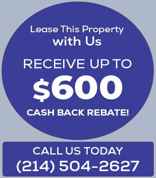 RECEIVE CASH REBATE UP TO $600 when you lease this apartment with us!! Contact Find1Rent1. com for Exclusive Online ONLY Special #8878 – We provide a 100% Free Service to find the best place for your budget. Considering a different property? Call 214 504 2627 We work with 85% of all properties throughout DFW. Our Cash Back Rebates are paid direct to you, the tenant. Prices, specials, features, and availability in this listing are subject to change daily. Listing posted by Theo Salazar (469) 607-8256. [REALLYO ID 4080889 08282024]