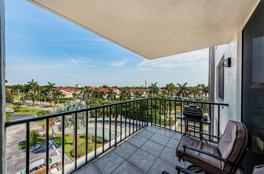 CALL FOR AVAILABILITY , AT A GREAT RATE! SORRY NO PETS. From the minute you walk in the door, you will notice the panoramic views from this 5th floor condo. Sit on the large balcony to enjoy the island views with a view towards the bay and sunsets. This updated condo features luxury vinyl flooring throughout for easy care and comfort. The updated kitchen with its quartz countertop, eye catching glass tile, SS appliances and bead board ceiling gives you that true tropical feeling. The generous sized living/dining area with its large windows, offers an abundance of natural light. Huge bedroom with ensuite has updated vanity and lighting, step-in shower, walk-in closet and has direct access to the balcony. The half bath has also been nicely updated and is adjacent to the washer/dryer.
