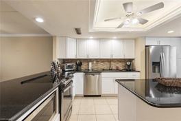 Move right into this stylishly updated, turnkey condo offering modern finishes, a bright open layout, and effortless living in one of Fort Myers' most convenient locations. The spacious 2-bedroom, 2-bath floor plan features a renovated kitchen with stainless steel appliances, a large island with bar seating, and generous cabinet space—ideal for cooking and entertaining. The primary suite includes a walk-in closet and an en-suite bath with a glass-enclosed shower. Plantation shutters throughout add a polished touch, while in-unit laundry and ample storage provide everyday ease. Enjoy peaceful courtyard views from this move-in ready home. Community amenities include a clubhouse, fitness center, sauna, shuffleboard, and a sparkling pool. WATER is INCLUDED. Just minutes from downtown Fort Myers, shopping, dining, and Gulf Coast beaches.