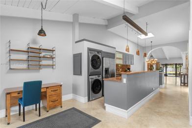 OFFERED NOW Furnished or Unfurnished. Discover this beautifully remodeled villa in the prestigious and fascinating Three Islands neighborhood, Loaded with upgrades,2 bedrooms, 2 baths + a convenient Murphy bed for guests, High vaulted cedar ceilings throughout, Impact-resistant windows for enhanced comfort, peace of mind,Washer & dryer inside unit, 2 dedicated parking spaces, Covered terrace overlooking a tranquil lake, enjoy your own outdoors zen space. Minutes to the beach, Walmart, Publix, shops and restaurants. Casa D’Angelo ,The Capital Grille ,Chima Brazilian Steakhouse, Burlock Coast at The Ritz-Carlton, Aventura Mall, Las Olas Boulevard boutiques galleries.& Culture: Broward Center for the Performing Arts, Riverwalk Arts & Entertainment District, Seminole Hard Rock Live & Casino