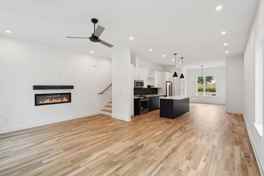 Thoughtfully designed for both comfort and sophistication, the open-concept main level features expansive living and dining spaces anchored by a contemporary fireplace. The kitchen flows seamlessly for entertaining while maintaining a clean, modern aesthetic.