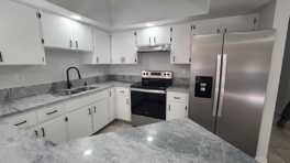 1st Floor! 2 Bedroom, 2 Full Bath, 1050sf, Fully Remodeled. Granite Counter tops- New Whirlpool stainless steel Appliances- 40" Electric Fireplace- Fans w/Remotes in both Bedrooms & Living Room- Walk-in Shower- just to name a few! On-site Parking- Two Laundry Facilities- Swimming Pool- Courtyard- BBQ Pavilion Area. Small Pet Friendly. First & Security Only!