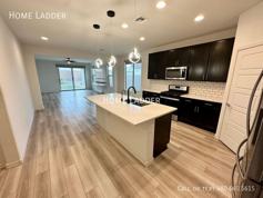 Beyond the entry, the home opens into a bright and spacious open-concept kitchen and living area. The stylish eat-in kitchen features a large center island, subway tile backsplash, stainless steel appliances, a walk-in pantry, and abundant cabinetry. The kitchen flows seamlessly into the main living and dining areas, creating an inviting space to gather and relax.