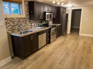 Walk Into A Gorgeous Open Concept Completely New Spacious And Bright Basement Suite With A Large Open Concept Combined Kitchen, Dining And Living Room. Granite Countertops, Modern Backsplash, Decadent Chocolate Cabinetry, Gleaming New Laminate Flooring And Stainless Appliances Highlight This Space. You Will Be So Excited To Entertain Your Friends & Family Here! Just Off Your Living Space Is A Very Large Bedroom With A Double Closet.