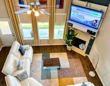 The primary bedroom, located downstairs, offers a peaceful retreat with an ensuite bathroom, soaking tub, separate shower, and walk-in closet. Upstairs, enjoy an expansive game room for endless fun.