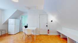 Meticulously renovated 2 bedroom, 2 bath apartment in the East Rock section of New Haven. This third floor unit features a spacious 4 room apartment with remodeled eat in kitchen, 2 remodeled baths, primary suite with vaulted ceilings & a large second bedroom. Laundry in unit.