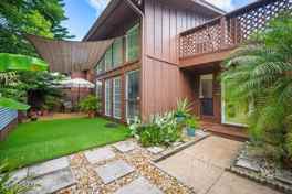 Lovely renovated 2-bedroom, 2-bath townhome complete with an additional office or storage room situated on a quiet cul de sac. Open, light-filled layout featuring dramatic wood-vaulted ceilings, a wall of windows, and French doors leading to a private fenced patio. Upgraded kitchen with glass countertops, custom cabinetry, stainless steel appliances,. Upstairs, the large primary suite offers a wall of closets with elegant French doors and a private balcony, Renovated bathrooms, an indoor laundry area, and a large two-car carport. Community pool, clubhouse, and miles of scenic walking paths. RBP offered at $39.95