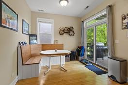 Welcome home to this gorgeous 2 bed 1 bath on a quiet shady street in Roscoe Village available September 1. Situated on the first floor of an impeccably maintained early 20th century house bursting with character, you will be in love the moment you step inside. The bright and inviting living and dining room gives way to two bedrooms with ample closet space and a well-appointed kitchen with stainless steel appliances and plenty of storage. Enjoy morning coffee in your breakfast nook overlooking your private balcony which looks out on a stone paver outdoor space complete with pergola and firepit (private to the owner but can be used upon request) Laundry is situated in unit as well! One premium garage spot is included. Easy access to brown line, expressway, and all the quaint shops Roscoe is known for! Owner wants a 9 or 21 month lease. No pets please.