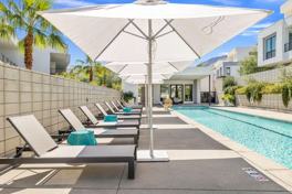 Discover the ultimate Palm Springs lifestyle in this exceptional condominium at Cody Place, a premier gated enclave just minutes from the heart of downtown. From this prime location, you'll be a few blocks from acclaimed restaurants, lively nightlife, and boutique shopping, all while enjoying the luxury of resort-inspired community amenities. This multi-level home is thoughtfully designed for modern living, offering an owned solar system, dual-zone HVAC for year-round comfort, and a finished two-car garage complete with epoxy flooring and EV charging. The chef-inspired kitchen features custom upgrades and a generous island, ideal for entertaining. On the main level, expansive custom tile floors and sliding stack doors open seamlessly to an outdoor living space awaiting your personal touch. A striking staircase leads to the second level, where a loft with dramatic clerestory windows frames west-facing mountain views. Perfect as a den, media room, or office, this flexible space is filled with natural light. The upstairs also includes a guest bedroom and bath, laundry room, and a primary suite showcasing views of Southridge, a spa-like ensuite, and a spacious walk-in closet. The crown jewel of the home is the third-level covered rooftop deck, designed for both relaxation and entertaining with panoramic views all around. The residence is also prewired for media and connectivity throughout. Cody Place residents enjoy exclusive access to a stylish clubhouse, two resort-style pools-one an Olympic-length lap pool-a spa, outdoor fire pit, and dog park. Combining energy efficiency with upscale design, this condominium offers an unparalleled leasing opportunity in one of Palm Springs' most sought-after communities. (Window coverings being installed 3/7/25)