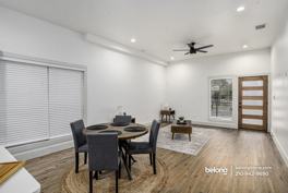 A striking modern structure defines this home, offering three bedrooms, 3.5 baths, and a thoughtful layout designed for both ease and comfort. Step into the living area to find clean lines, warm flooring, and generous wall space that invites you to shape the room exactly the way you want. Central A/C, heat, and a digital thermostat support year-round comfort with simple, intuitive control.