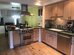 Ideally located between downtown Carmel and Monterey in a wooded setting. New hardwood floors throughout, stainless steel appliances in renovated gourmet kitchen. 2 bedrooms, full bath and hallway closet upstairs. Half bath, large living room with built-in bookcases and vaulted ceiling, study, kitchen, and dining room downstairs. Fully furnished throughout. Washer and dryer in unit. Private, gated stone terrace in front, large deck in back overlooking meadow and tennis courts. Swimming pool less than 40 feet away.