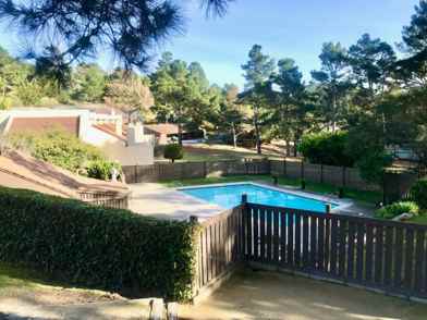 Ideally located between downtown Carmel and Monterey in a wooded setting. This is the highly desirable High Meadow Terrace complex at 3600 High Meadow Drive. New hardwood floors throughout, stainless steel appliances in renovated gourmet kitchen. 2 bedrooms, full bath and hallway closet upstairs. Half bath, large living room with built-in bookcases and vaulted ceiling, study, kitchen and dining room downstairs. Fully furnished throughout. Washer and dryer in unit. Private, gated stone terrace in front, large deck in back overlooking meadow and tennis courts. Swimming pool less than 40 feet away.