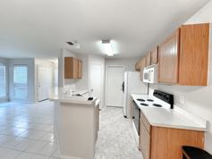 Welcome to your charming 3-bedroom, 2-bathroom duplex! This delightful home features a spacious living and dining area seamlessly connected to the kitchen, which boasts a breakfast bar, stove/oven, microwave, and dishwasher for your convenience. The primary bedroom is generously sized, offering a walk-in closet and a full bath with a tub/shower combo and single vanity. The secondary bedrooms are well-sized, each equipped with ceiling fans and ample closet space. Step outside to enjoy the oversized backyard and a side patio slab, perfect for outdoor relaxation and activities. Lawn maintenance is conveniently included in the rent, ensuring a well-kept exterior without the hassle. This home is conveniently located near shopping centers and offers easy access to IH-35, making trips to downtown New Braunfels a breeze. Don't miss out on this adorable duplex that combines comfort and convenience in a prime location! Parking is limited to two vehicles only.